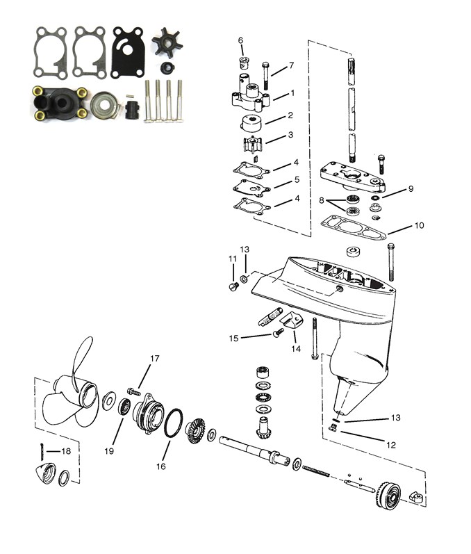 Evinrude/Johnson - Växelhus delar - 4/4,5/5/6/7,5/8hk
