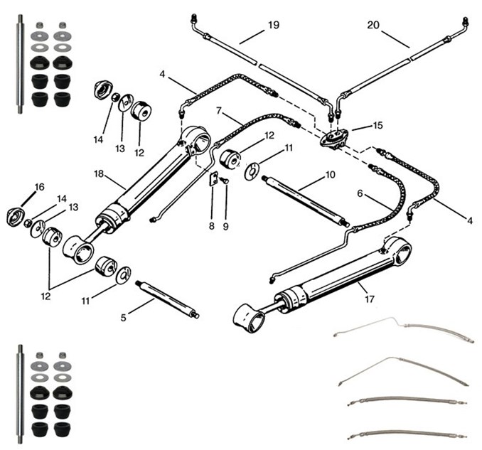 Det finns två olika varianter av trimcylindrar, det som skiljer är längden på cylinderhuset som på 26400 och 26410 är 15 9/16 tum medans den på 26500 och 26510 är 16 3/16 tum. Enklaste sättet att ta reda på detta är att undersöka gjutnumret som finns på sidan av cylinderhuset (obs, krävs att powertrimcylindern demonteras från båten). De långa hydraulslangarna finns därför också i två längder, 26250 och 26200 korta cylindrar och 26190 och 26240 för långa cylindrar.