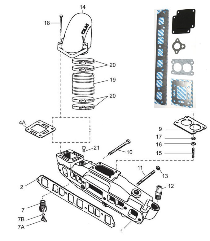 Mercruiser - Motordelar/Bensin - Avgassystem - 3.0 4-cyl 1990->