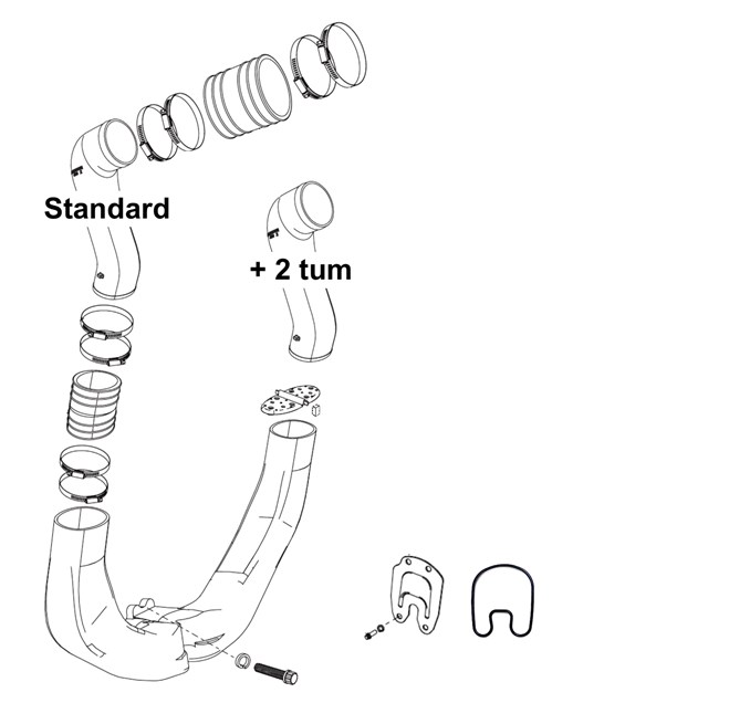 Bilden nedan visar krökar till 496 Magnum (ej HO). HO modellerna har högre effekt och använder sig av silent choice (eller "raka rör"), dvs vid högre motorvarv måste en del av avgaserna släppas förbi bockhornet för att inte motorn ska gå varm / skada ventilerna.