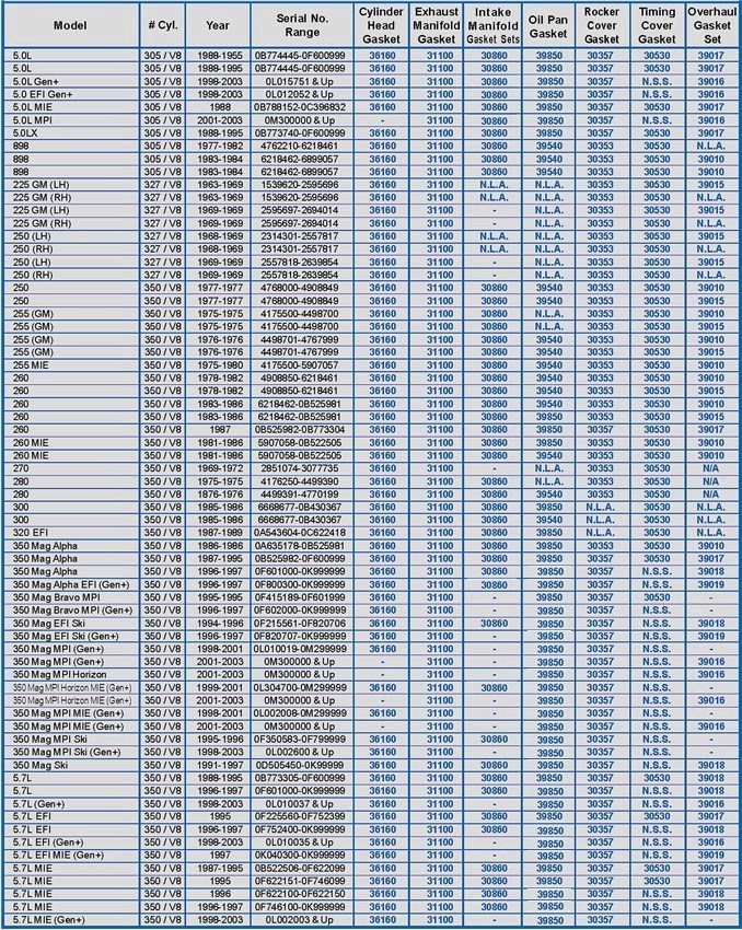 Mercruiser - Motordelar/Bensin - Motorpackningar - Ekonomi - GLM
