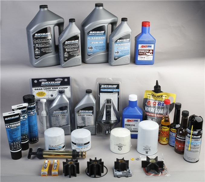 Motorolja: 6 liter. Drevolja: Alpha drev, 2 liter. Bravo drev, 3 liter. Tändstift: 8 st Drevolja Mercruiser original eller AMSOIL. Tändstift finns med kort (vänster) och lång gänga (höger)