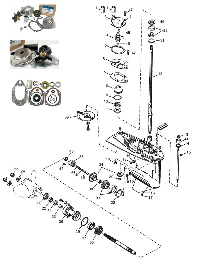 Fram, back, pinjong, framdrevslager, shims och pinjongmutter.