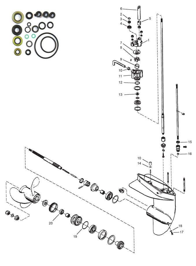 Delar till växelhus Mercury 3,9/4/4,5/6/7,5/9,8hk 2-takt. Årsmodeller ca mitten 70-talet till 1985/86.