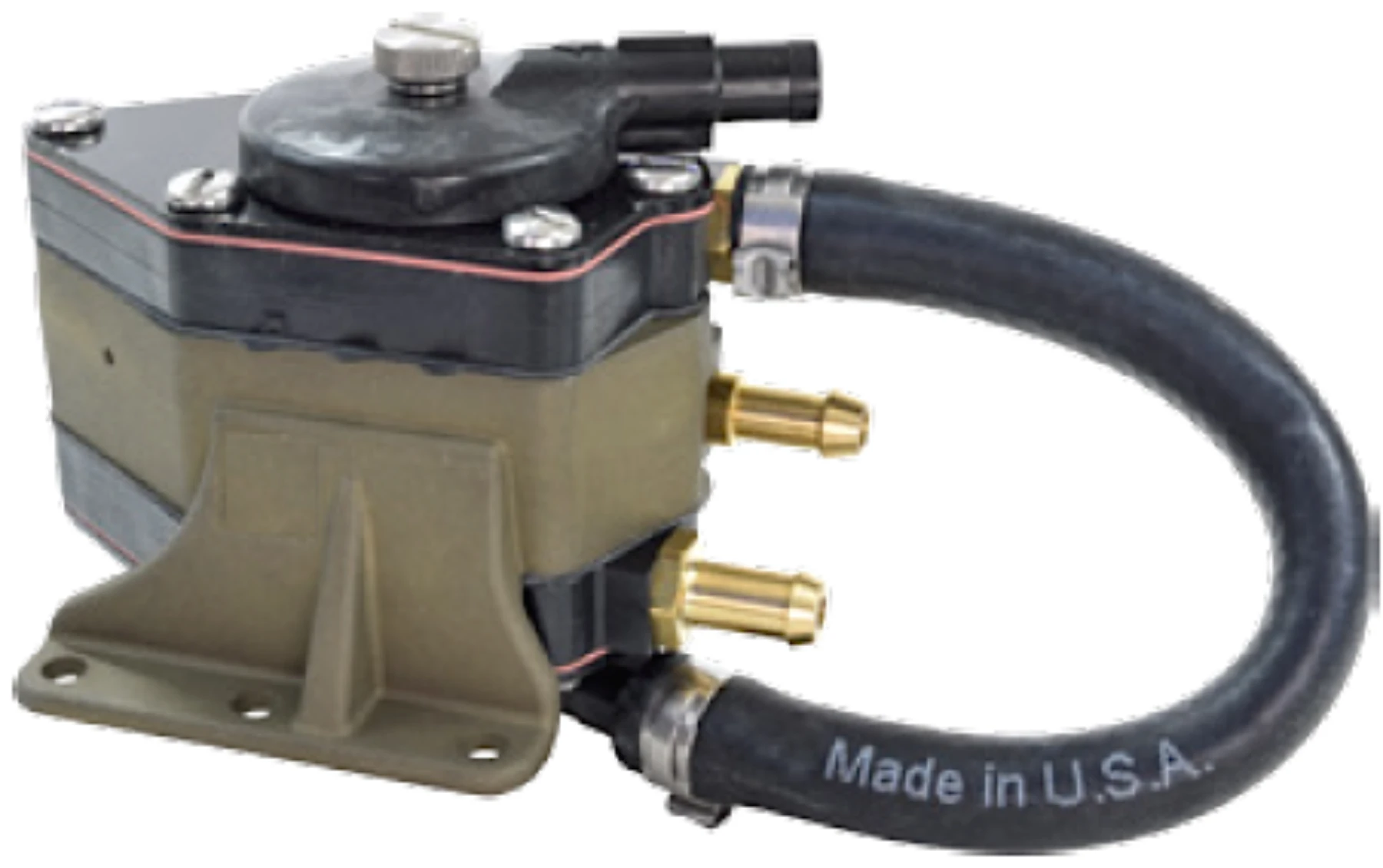 Bränslepump till Johnson/Evinrude 90-250hk V4/V6 crossflow och looper (ej 60°). Passar som ersättning till VRO pumpen, MEN OLJAN MÅSTE BLANDAS I TANKEN istället. Den här pumpen blandar inte oljan med bensinen.