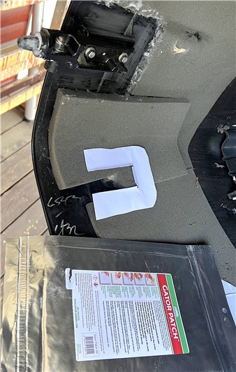 Exempel på förstärkning av spännet till en motorkåpa (Mercury 80hk):