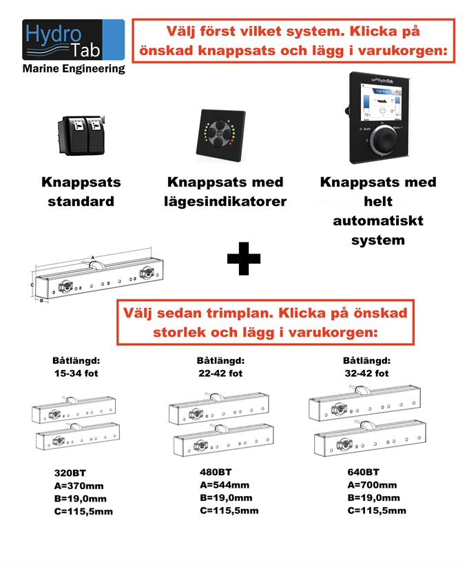 Finns från enklaste knappsatsen till avancerat autosystem. Enkla att installera, inga förkunskaper krävs. Trimplanen manövreras pneumatiskt (tryckluft) och inget oljeläckage kan ske ut i naturen. Eftersom trimplanen fälls ned lodrätt, är de skyddade mot skador som vid t.ex. påbackning av boj. Även badande i närheten av trimplanen löper mindre risk för skärskador mot traditionella trimplan. Trimplanen/interceptorerna är inte känsliga för snäckpåväxning.