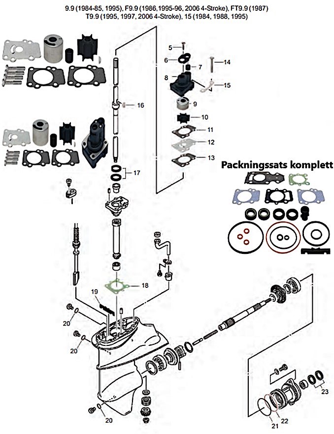 Yamaha 9.9 1984-85, F9.9 1986, 1995-96, 2006 4-takt. FT9.9 1987, T9.9 1995,1997, 2006 4-takt. 15 1984, 1988, 1995.